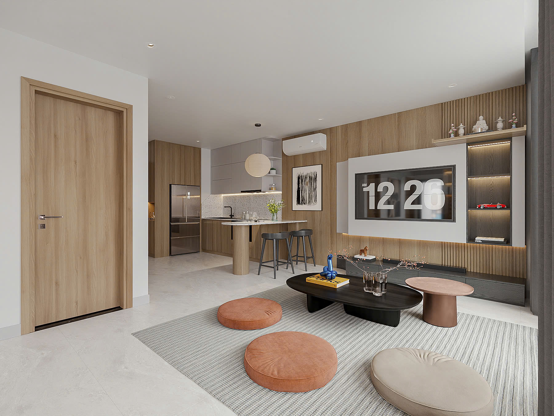 Hạng mục thi công: Phòng khách, phòng bếp, 2 phòng ngủ, nhà vệ sinh.